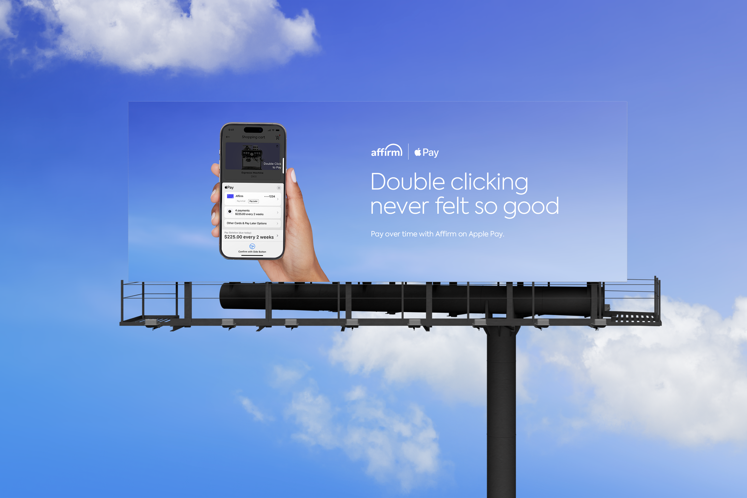 To launch Affirm on Apple Pay, we created a bold, high-visibility campaign designed to drive awareness and adoption of this new, seamless way to pay over time. The concept, Bold Possibilities, was inspired by the ease and empowerment that comes with using Affirm within Apple Pay—positioning the integration as a gateway to more confident, flexible spending. Visually and strategically, the campaign brought together both brands to highlight a world of potential—where everyday purchases feel more accessible and empowering, no matter how big or small.